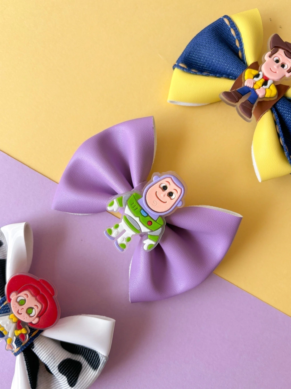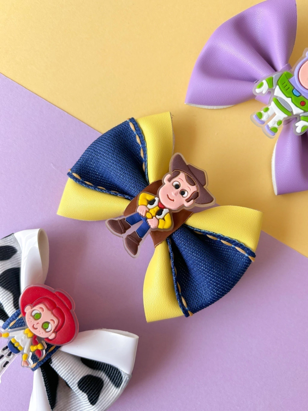 inspirado pelo mundo mágico de Toy Story! Este laço é perfeito para pequenos aventureiros que adoram se vestir com estilo enquanto exploram a imaginação sem limites dos seus brinquedos favoritos. Com cores vibrantes e um toque de diversão pixarosa, este laço vai transformar qualquer look em uma aventura digna de cinema!