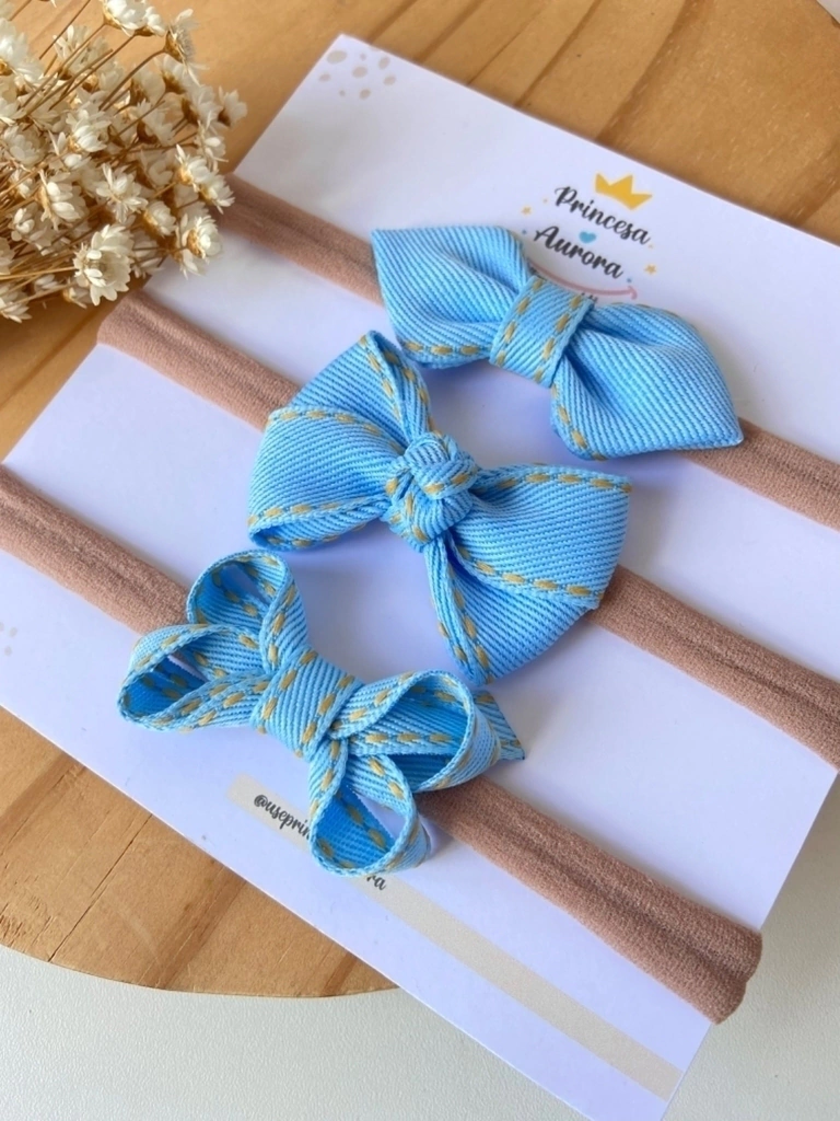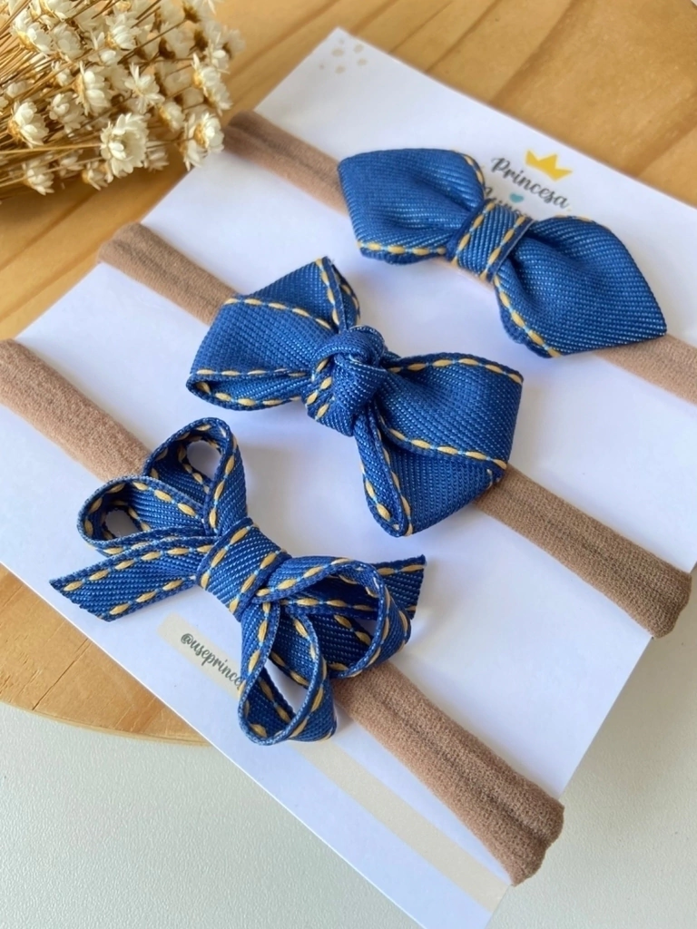 Apresentamos o Kit de Faixinhas para Bebês All Jeans Baby, a escolha ideal para deixar os looks das suas pequenas ainda mais charmosos e estilosos! Este kit é composto por faixinhas em jeans, cada uma com um delicado lacinho que mede entre 5 e 6 cm, proporcionando um toque especial a qualquer produção.