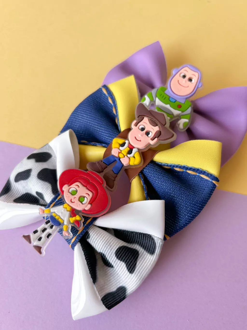 inspirado pelo mundo mágico de Toy Story! Este laço é perfeito para pequenos aventureiros que adoram se vestir com estilo enquanto exploram a imaginação sem limites dos seus brinquedos favoritos. Com cores vibrantes e um toque de diversão pixarosa, este laço vai transformar qualquer look em uma aventura digna de cinema!