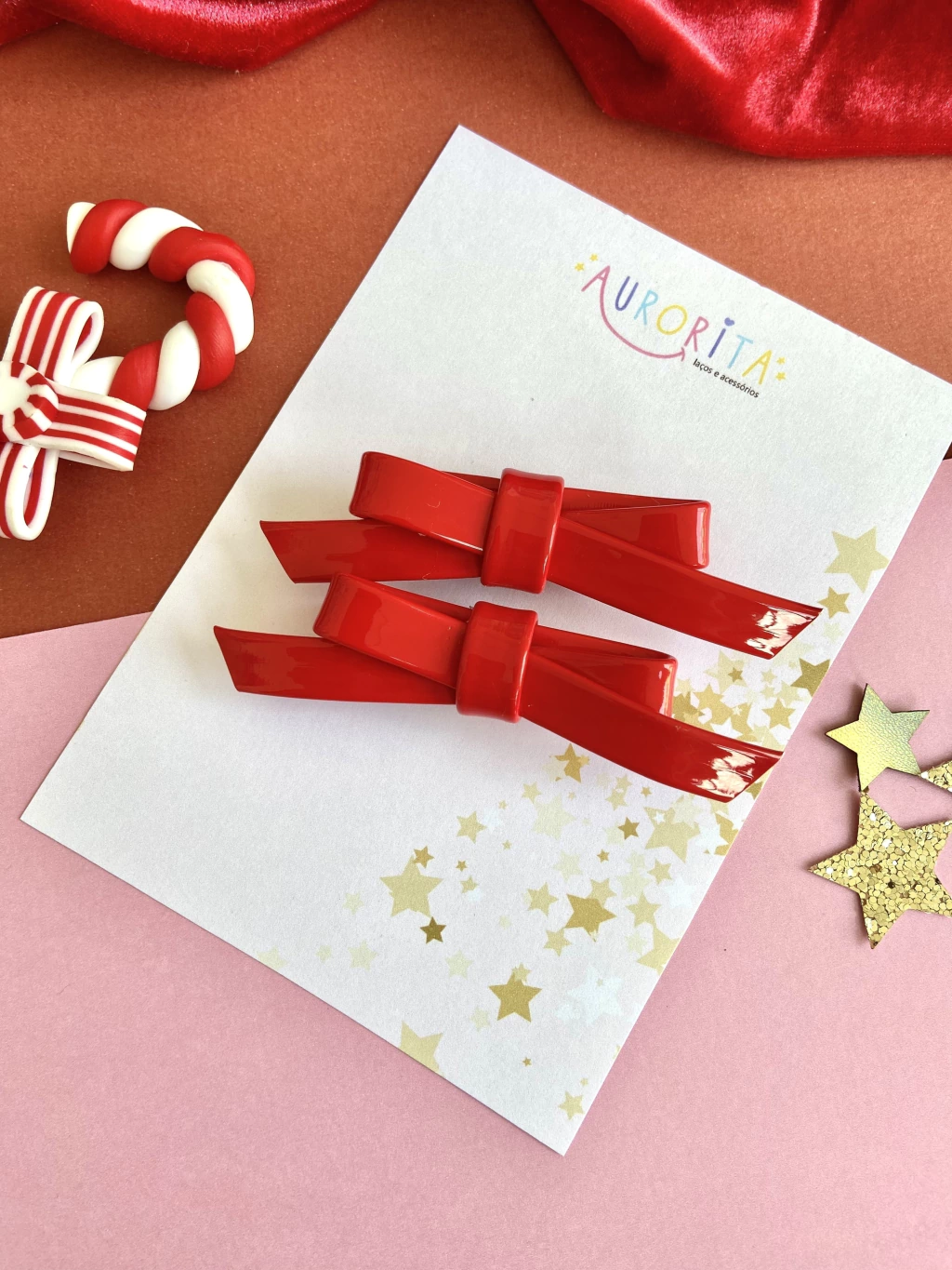 Encante sua pequena com o charme irresistível do parzinho, Com cerca de 7 cm, esses laços são o toque perfeito para compor o look de Natal, trazendo brilho e sofisticação para as ocasiões especiais.