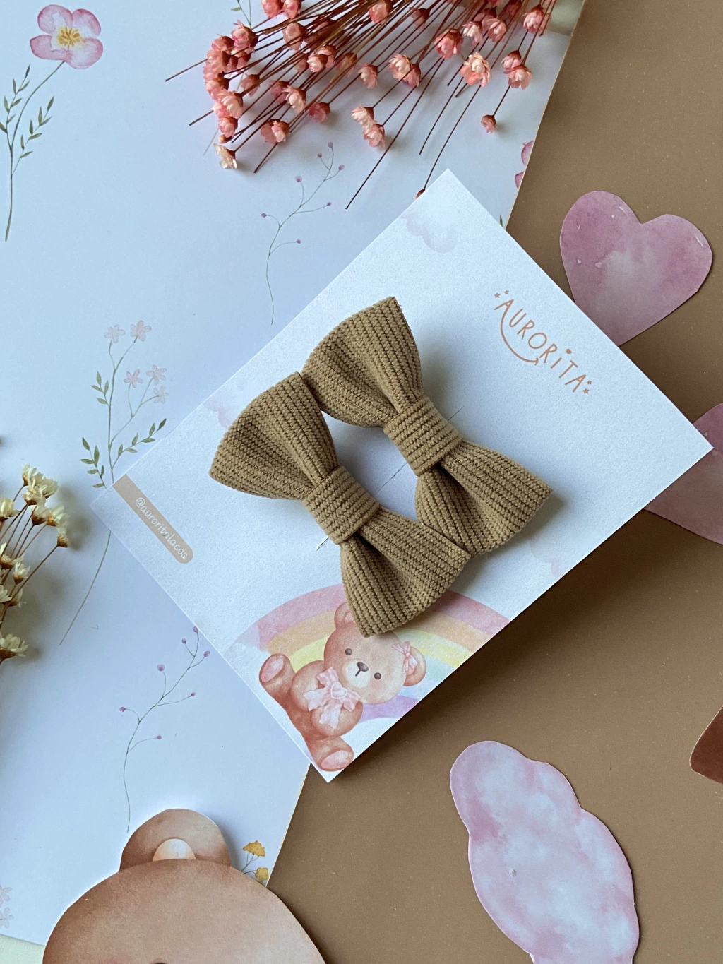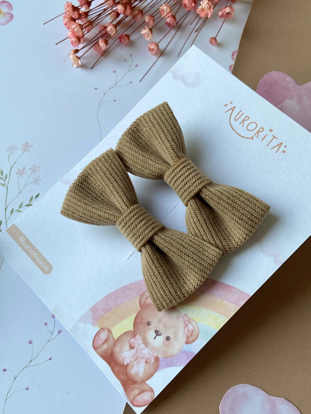 Feitos com um tecido de cotelê suave, esses laços não apenas adicionam um toque especial ao visual, mas também são equipados com presilhas antideslizantes, garantindo que permaneçam firmes mesmo durante as brincadeiras mais animadas.