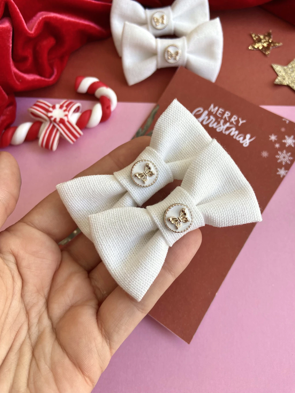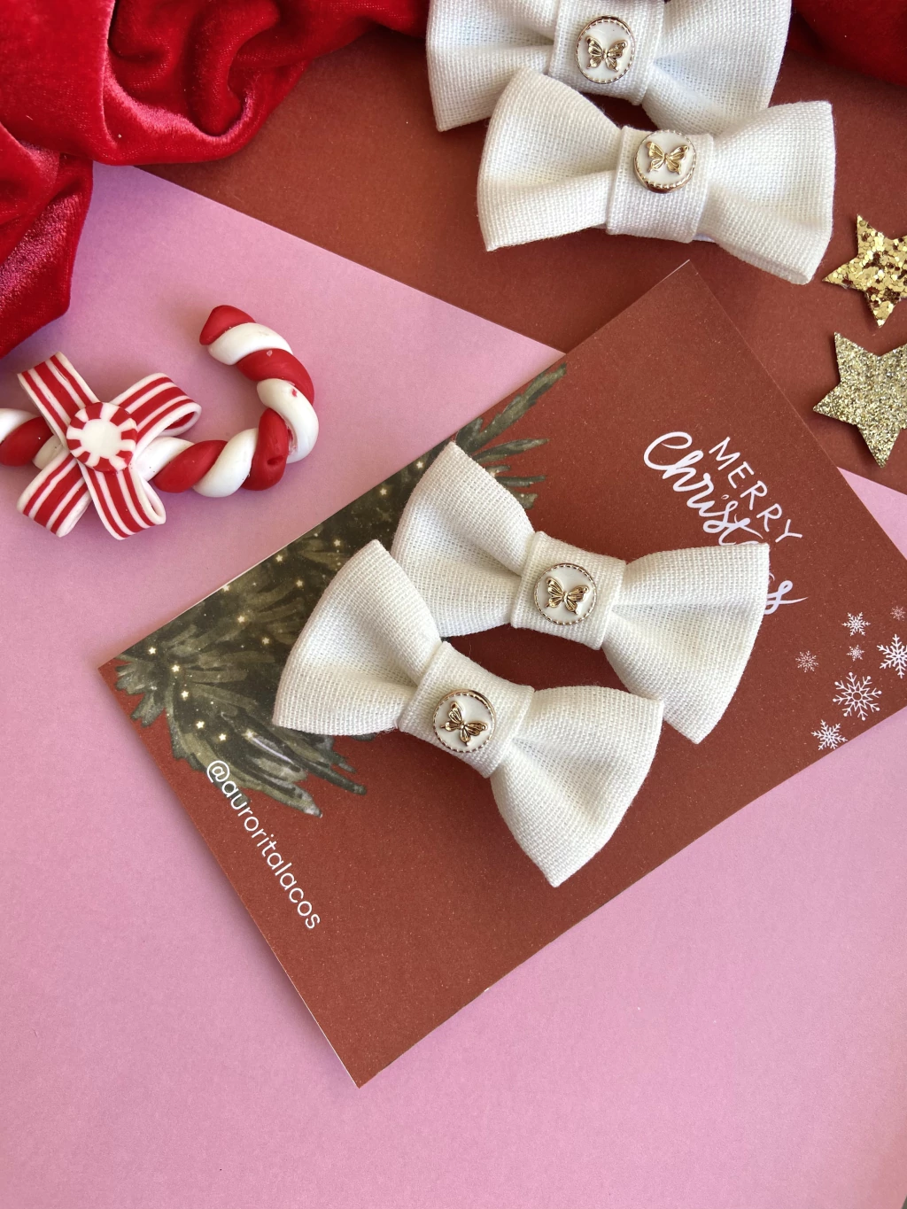 Encante sua pequena com o charme irresistível do Par Linho ! Com cerca de 6 cm, esses laços são o toque perfeito para compor o look de Natal, sofisticação para as ocasiões especiais.