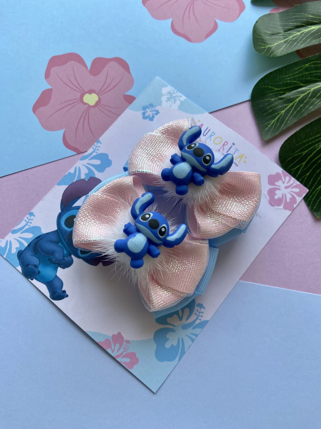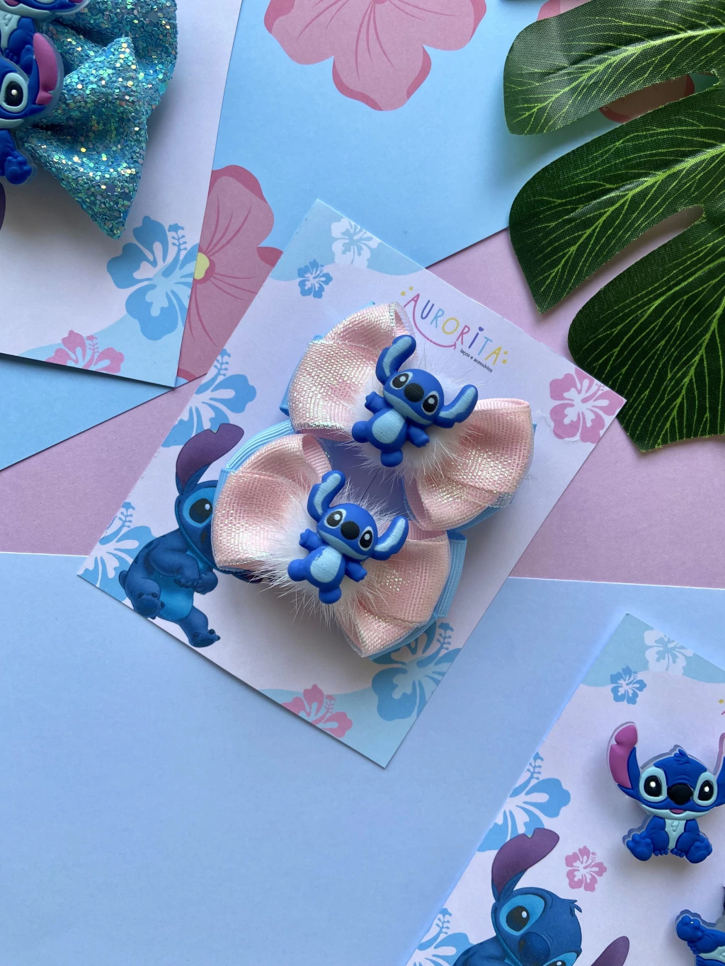Stitch! Este adorável parzinho mede cerca de 7 cm e é ideal para deixar o visual da sua pequena ainda mais encantador. Ele pode ser facilmente aplicado na presilha ou na xuxinha, proporcionando um toque especial em qualquer penteado.